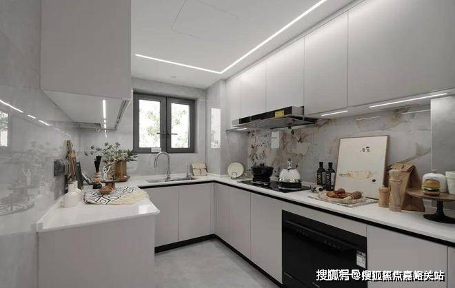 厨房采用 U 型布局,操作动线合理(洗 - 切 - 炒无缝衔接),预留双开门冰箱位置,同时与餐厅相邻,餐厅紧邻北向明窗,实现 “南北通透”,餐后清洁更便捷;