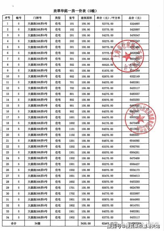 大华公园柏翠项目一房一价表▼