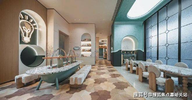可爱的绿色小泰坦不远万里,为孩子们带来一场奇趣体验。设计师以孩子的视角,布局童梦天地,更低的桌椅、更柔软的材质、更温暖的画面,在有限的空间里回应童年无限的好奇与渴望。