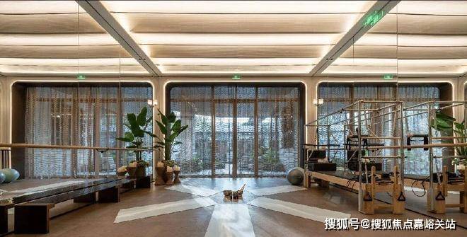 汗水滴落如晨露,呼吸随普拉提的动作起伏,每一次重复都是向前的印记,也是缪斯喜爱的健康生活方式。序厅和健身房内部设计为天花圆形发光膜和弧形艺术玻璃门,在大量拱形元素中点缀部分拼花装饰,让整个空间彰显柔润平和的质感与井井有条的秩序感。
