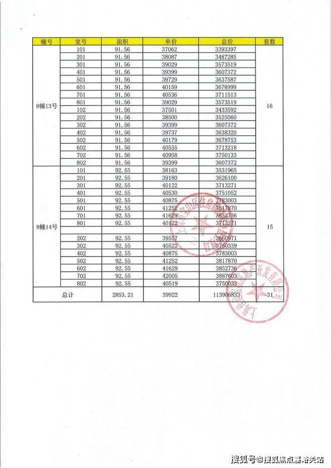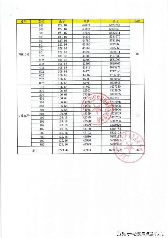 项目一房一价表
