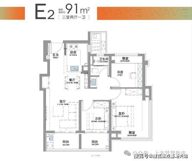 而招商·时代潮派|东屿此次建面约91㎡户型,就做出来了比市面百平户型更好的的 “南向双阳台+南北双飘窗”设计。