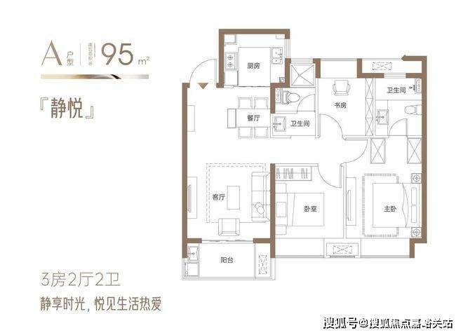 『静悦』约95㎡3房2厅2卫:三开间向阳户型,面朝风景,沐浴阳光;全明通透,让阳光照进每一寸惬意生活;户户飘窗,逐光而居,延伸空间尺度;全明卫设计,赋予私密空间明亮与清新;。方正有序的空间艺术,舒适实用,张弛有度