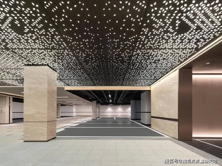 堪比星级酒店的 星空穹顶地库,以白金砂石材与古铜金属营造归家仪式感,顶部星光设计宛如穿行银河。