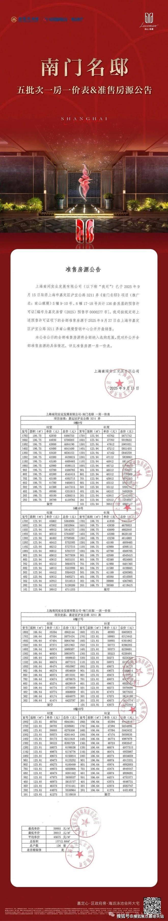 【南山璞缦】售楼处预约咨询热线:400-882-4198最新消息:嘉定新城封面:南山璞缦项目加推105-123㎡3房户型,共136套房源,过会均价均价45675元/㎡;另前期少量105-198㎡3-4房在售,总价365万起,可直接认购!