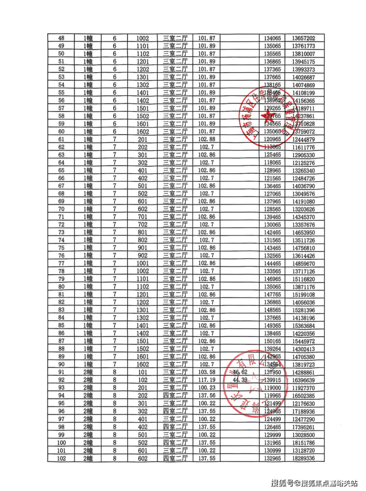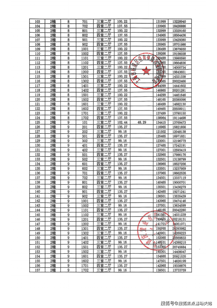 完整一房一价表如下:
