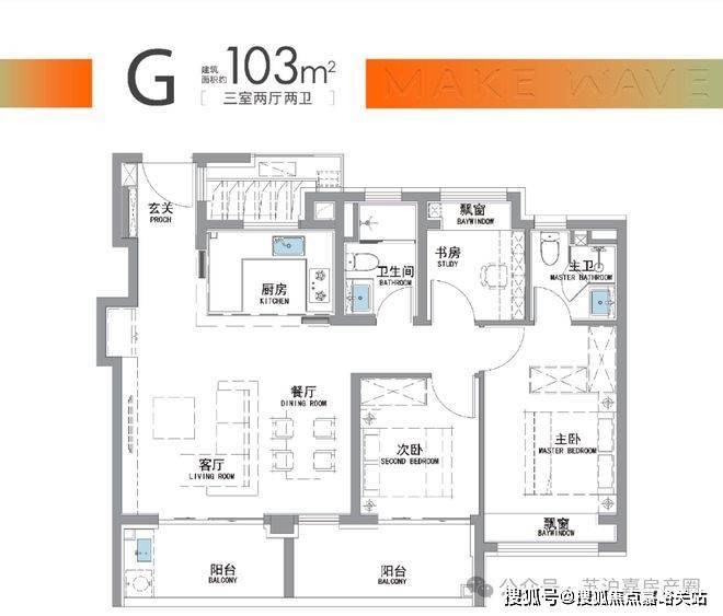 建面约103户型,南向超大面宽+双阳台,品质三房的不二之选!
