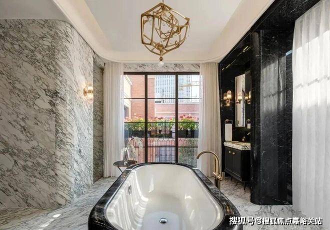 深铜色的栏杆和扶手融合传统与现代语汇,演变出一种当代型态,与现代白色洞石相映成趣,营造出优雅纯粹的意境。