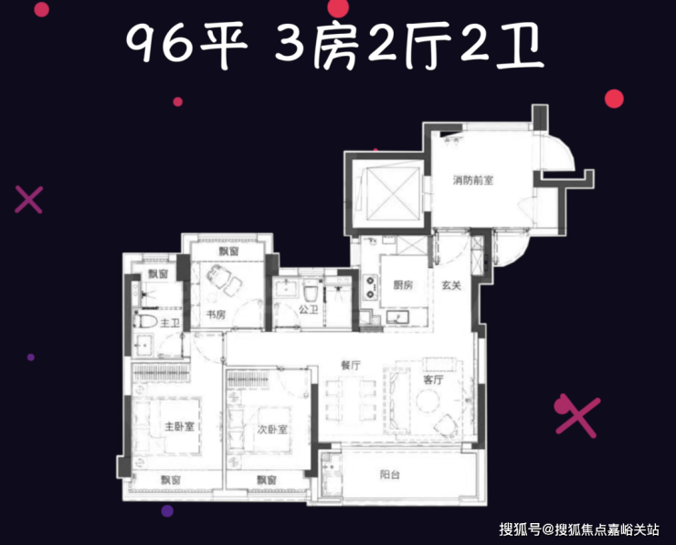 户型方面,建发海阅首府基本上都是主流设计,96平3房2卫户型,做得是横厅+S墙设计。