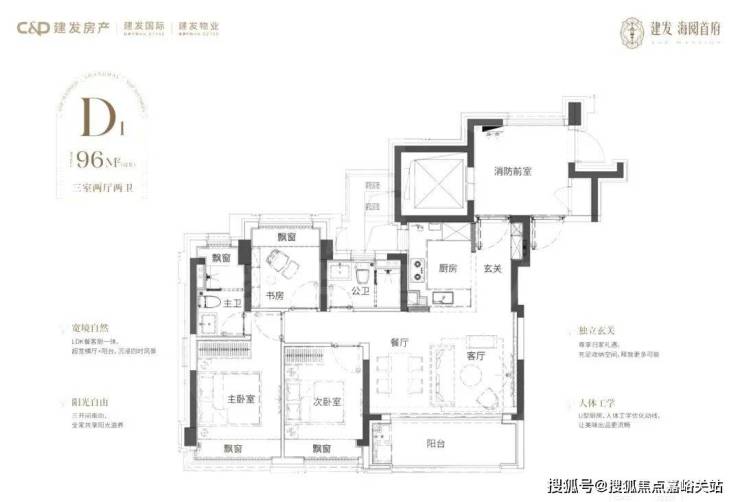 建面约96㎡3房2厅2卫