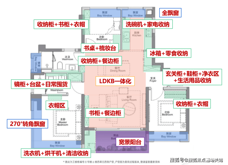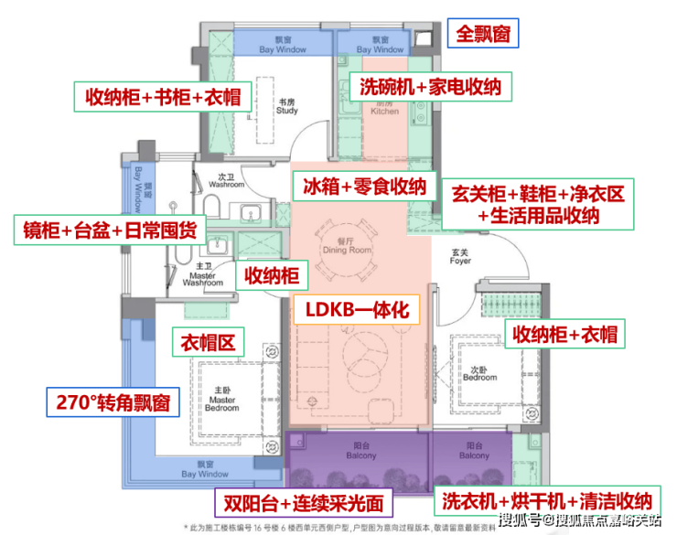 最后,多飘窗设计,进一步“偷”出了实用面积。居住体验更阔绰!