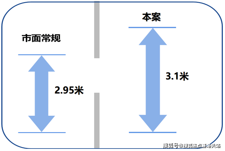 项目全户型 做到了标准层约 3.1米 的层高,多出来的向上空间,让居住的空间感更开阔,通风采光效果更好。