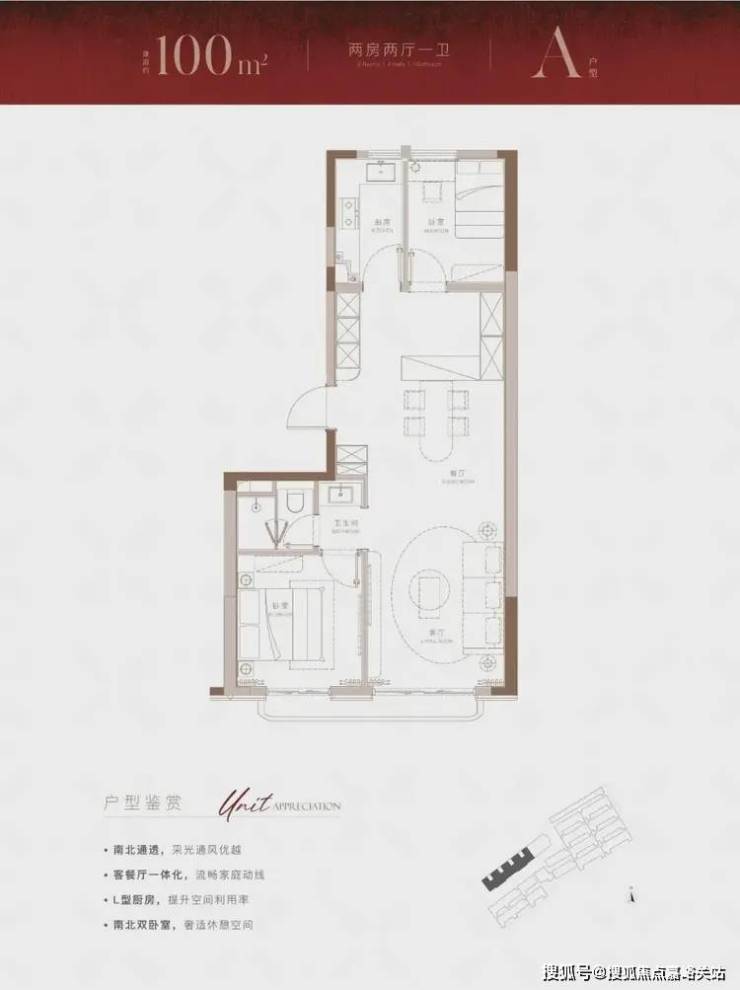 经典的 南北通透房型,卧室客厅采光皆丰沛, 一体化客餐厅带来的不仅是最便捷的烹饪动线,也为家庭成员之间的互动和交流日常提供了舒适空间,再加之 南北双卧设计,也保证了足够的温馨休息场地。