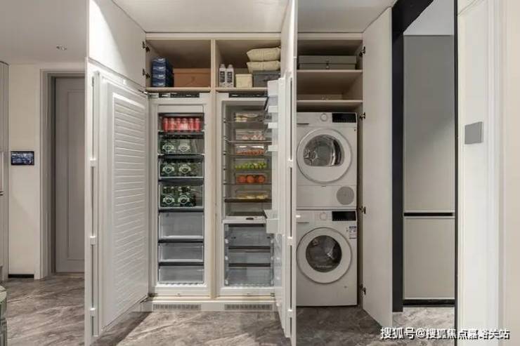在保留 南北通透、客餐厅一体化的同时,厨房空间迎来升级, U型大厨房不仅提供了更富裕的操作台面空间,也避免了烹饪过程中频繁转身移动传菜带来的不便。
