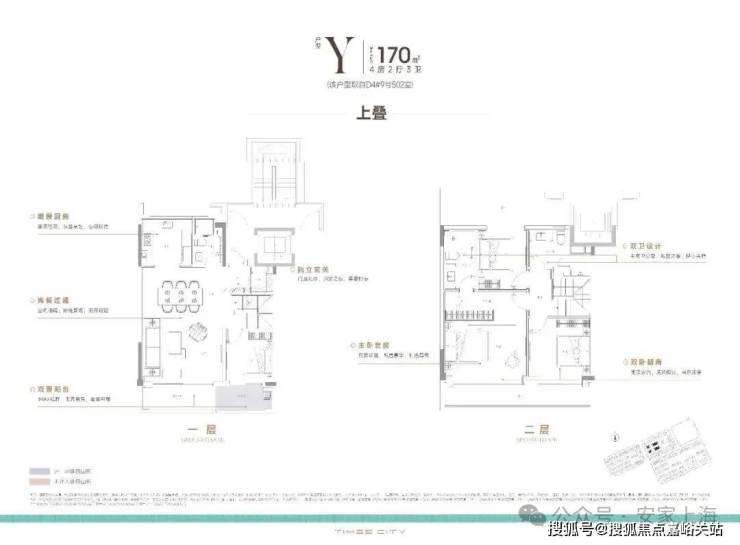 一般上叠户型通常仅配置单一北向露台与南向阳台,而本项目则通过 南北双露台与南向双阳台组合实现突破。