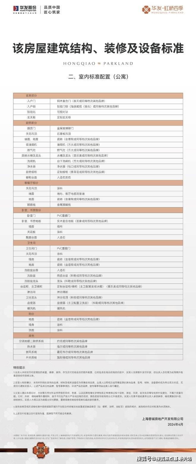 更有霍尼韦尔(或同等档次品牌)的新风、方太(或同等档次品牌)的油烟机和洗碗机、科勒(或同等档次品牌)的龙头和台盆、百年约克、圣象、施耐德等(或同等档次品牌)其他品牌国际一线品牌为生活保驾护航。