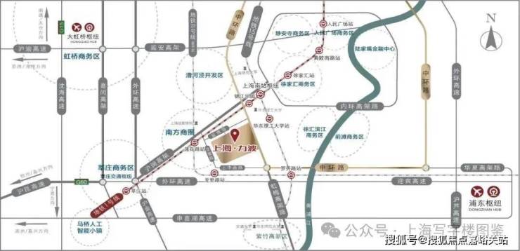 力波中心位于上海徐家汇西南方向约7、8公里处的闵行梅陇板块,靠近南方商城,所在位置原本是上海力波啤酒厂,距离1号线的莲花路站约1000米,规划中的22号线龙里路站600米。从项目出发,可直接上中环高架,虹梅高架,沪闵高架,嘉闵高架,车行至上海南站仅需9分钟,到虹桥高铁机场约25分钟,到浦东机场约40分钟。