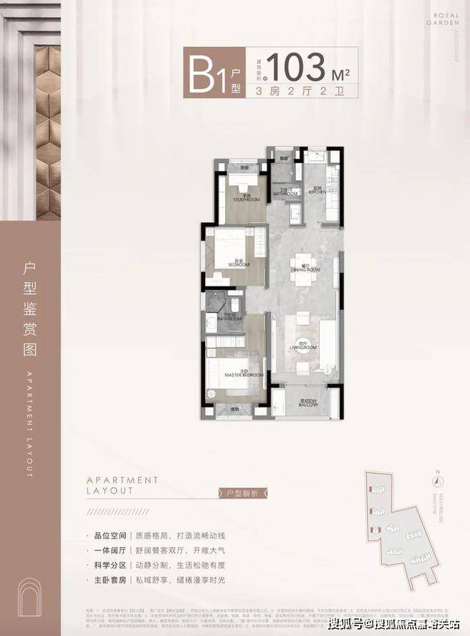 第一个亮点,就是动静分离,功能区和休息区互不干扰,客餐厅、厨房等公共活动区集中在一侧,卧室等休息区全部一侧,保证了私密性!☑️☑️静安玺樾售楼处电话:400 - 8377 - 020☑️☑️