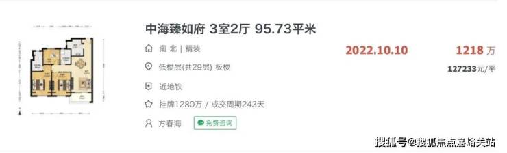 中海臻如府,同样是超高层住宅,房龄较新不超过3年,最新二手成交单价约12.7W/㎡。
