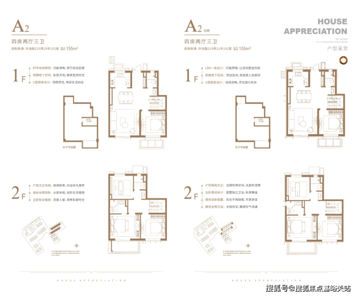 下叠户型,共有三个主力户型,建面约155、163、176㎡下叠。
