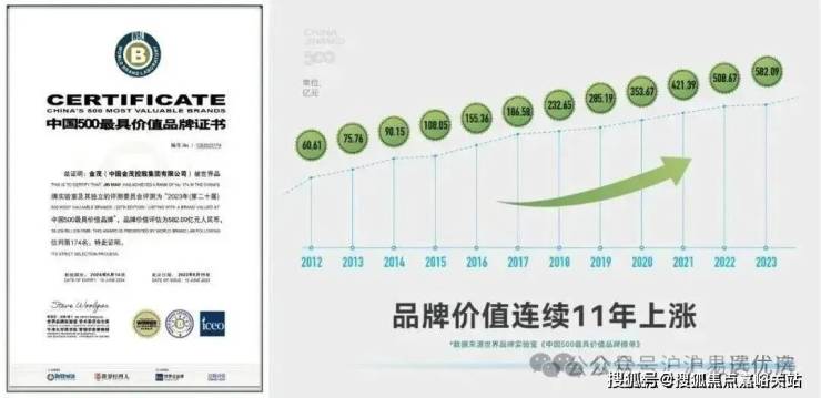 自2005年以来, 金茂已经连续19年入围“中国500最具价值品牌”榜 ,2023年更是以 582.09亿元 的品牌价值位列 第174名 。(数据来源于金茂官网)