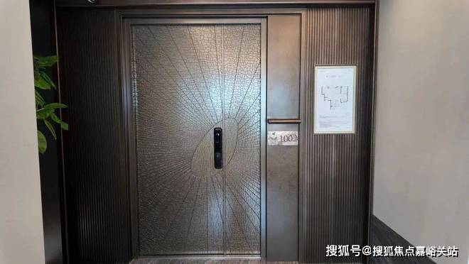 除105㎡以外的大户型(117㎡、143㎡),均为这种子母门设计,非常大气。每户门旁都有一个带射灯、 奢石背景以及项目LOGO的门牌号。翎翠滨江售楼处电话:400-8824-258