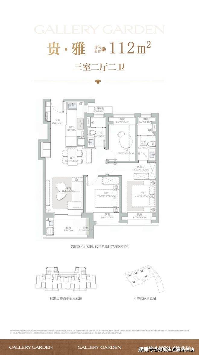 建面约112平三房为标准的三开间户型,设计上将传统的过道改为餐厅空间,将公共区域做大了,也减少了浪费;S墙设计将冰箱空间外移,厨房空间更宽裕。