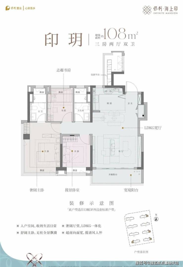 建面约108㎡3房2厅2卫(3.5 开间,约 11.4米南向面宽)