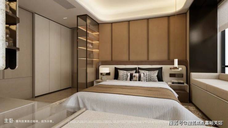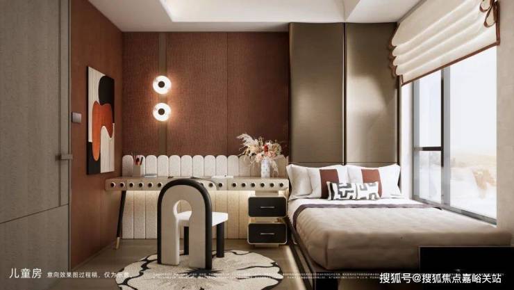 通过建筑结构优化处理,主卧创新性地引入 270°无柱转角飘窗设计。无柱形式规避视觉选挡,最大化空间通透感。其270”超大角度突破常规采光面限制,利用光学原理使阳光均匀漫射于室内。同时业主于此可实现全视野俯瞰社区花园景色。