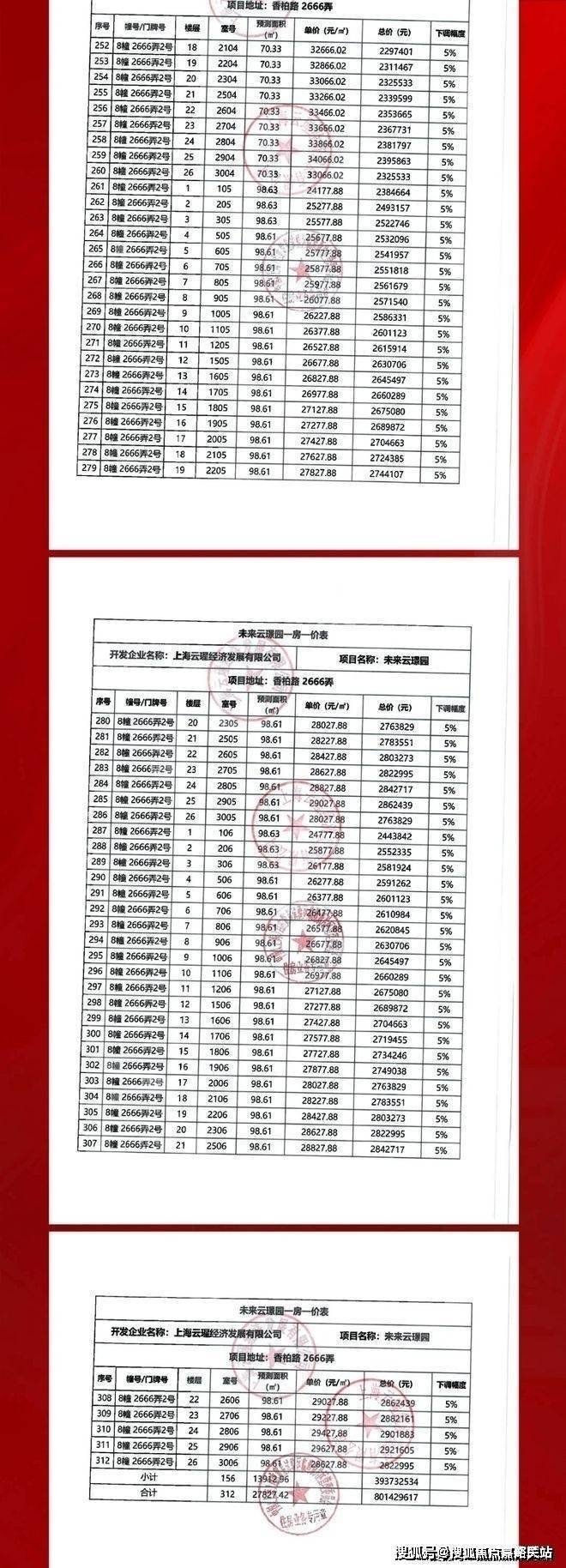 项目一房一价表