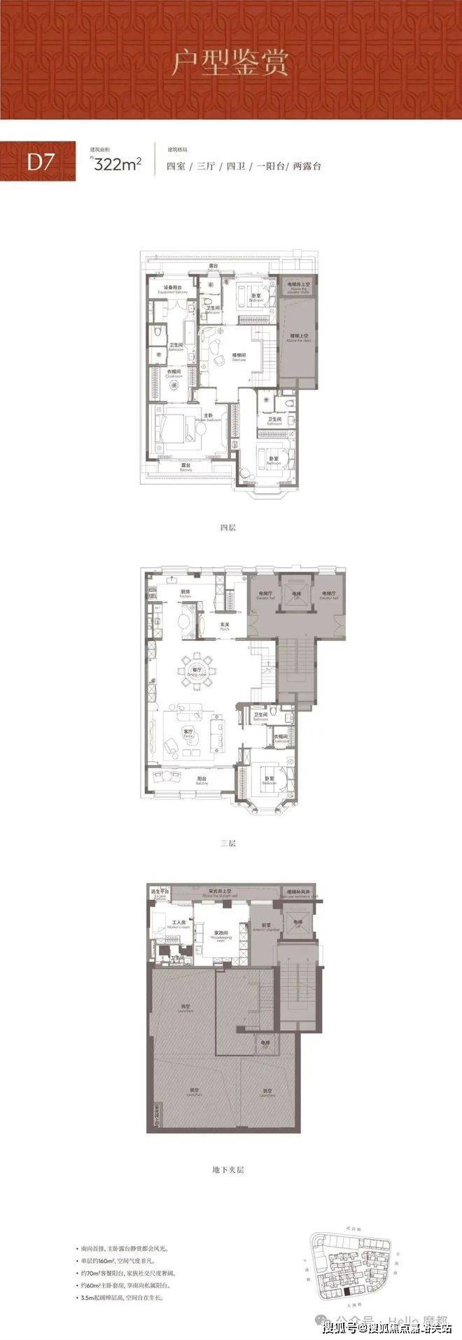 三层约3.5m、四层约3.6m层高,纵向空间感更显阔绰,舒居尺度跃然呈现。