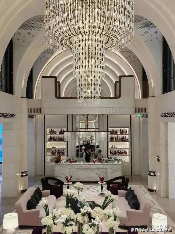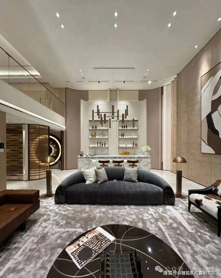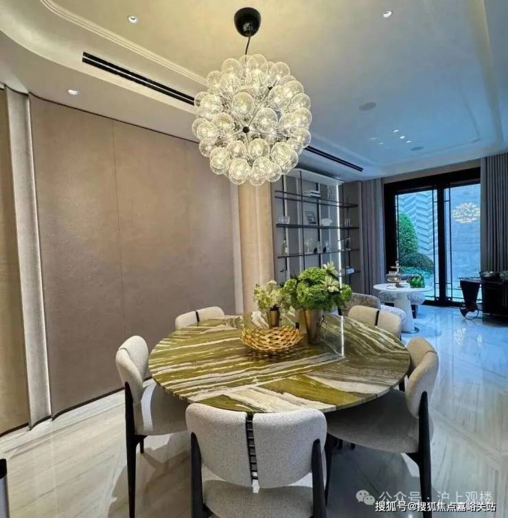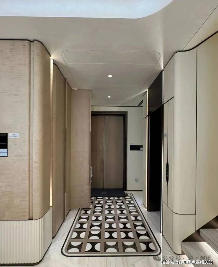 高定公区,重塑海派归家史诗;隐奢门庭:社区大门以古琦黑奢石手工锻造弧形幕墙,将珠宝镶嵌工艺融入建筑肌理;