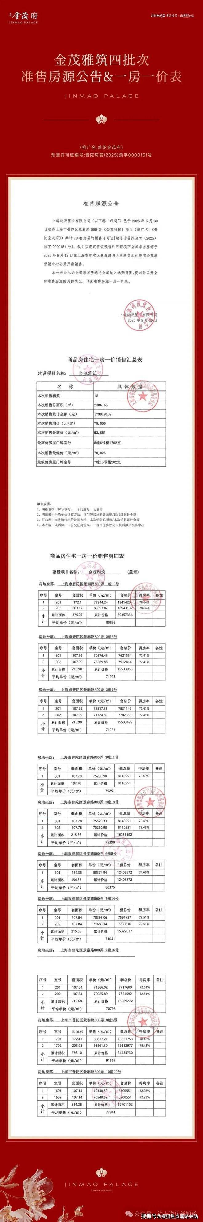 普陀金茂府售楼处电话:400-8824-198本批次一房一价表如下: