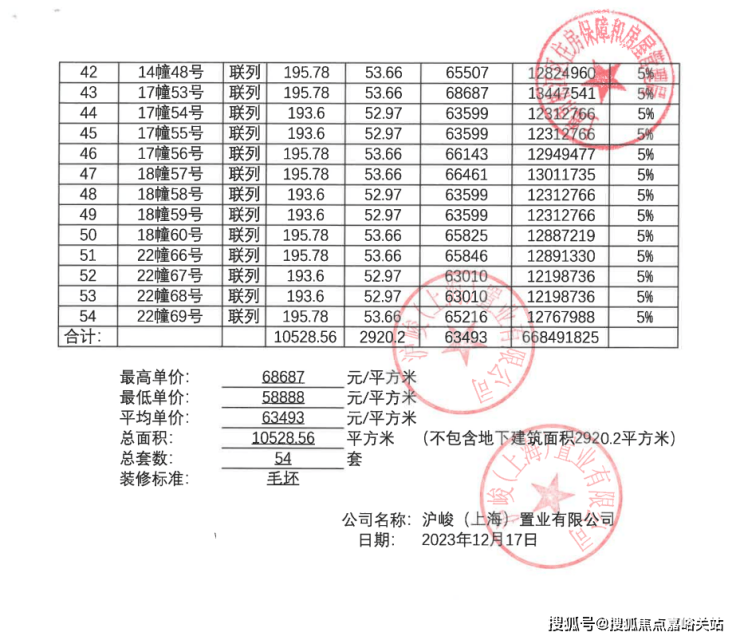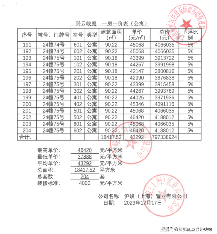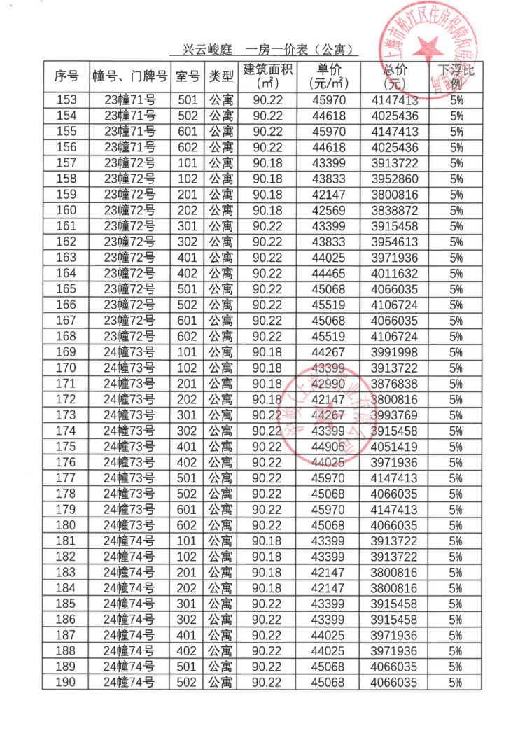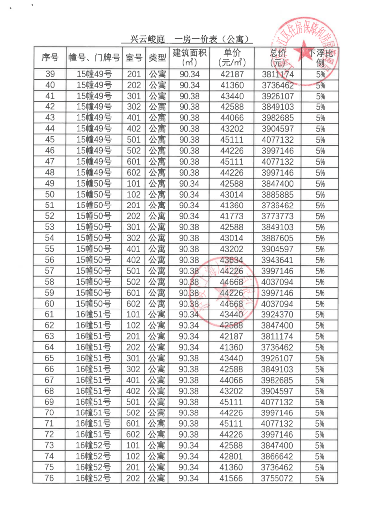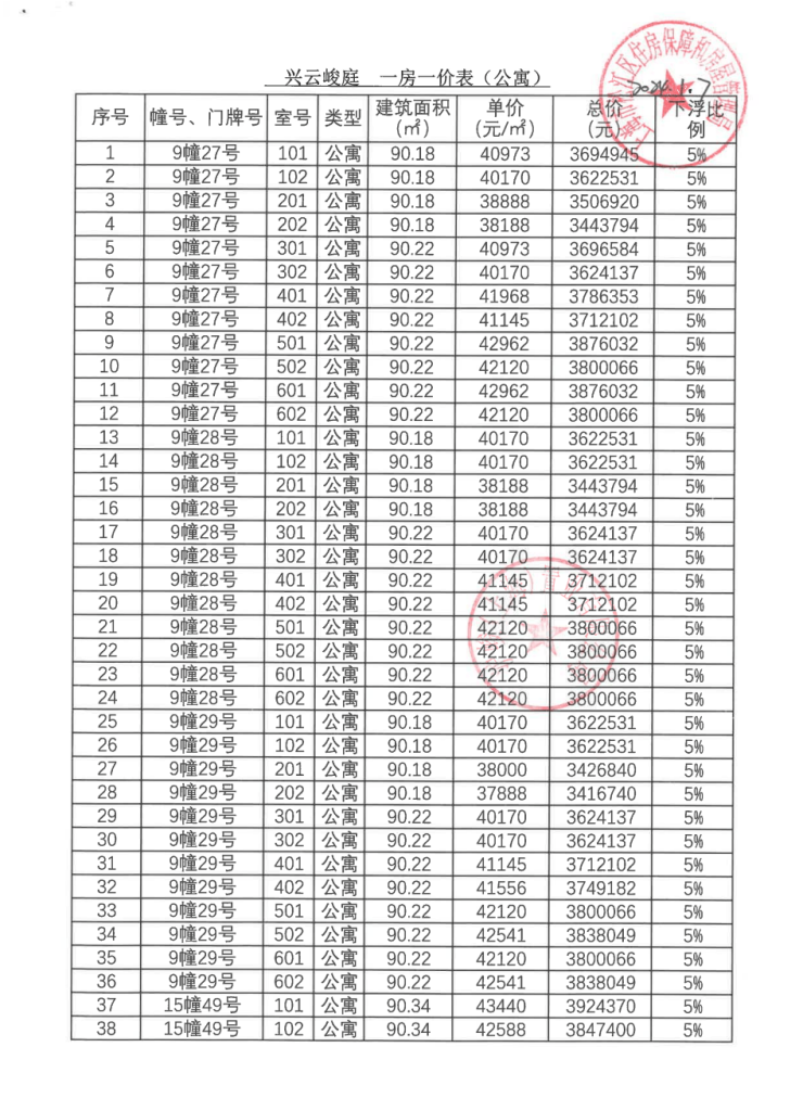 一房一价表: