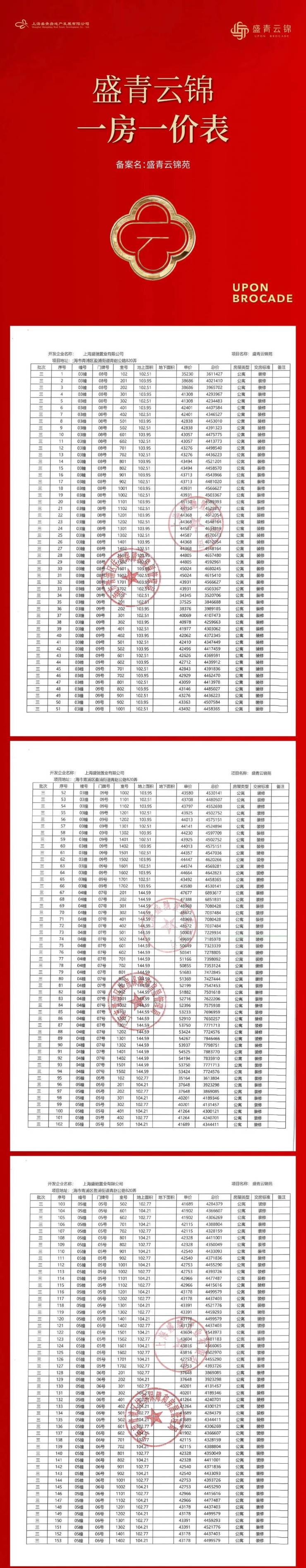 一房一价表: