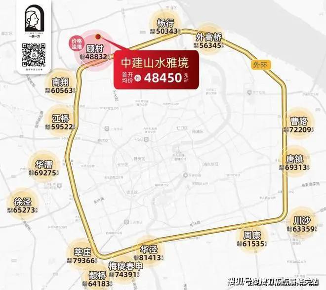 中建山水雅境营销中心VIP:400-8824-198✔✔✔(预约热线)2024上海外环线部分板块新房成交均价示意图