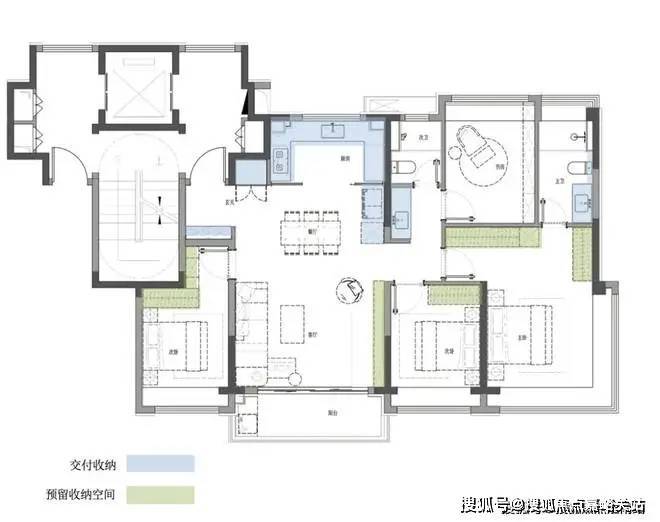 建面约144㎡的四房户型,还更进一步,配备了隐藏式的独立储藏空间,设计非常巧妙且实用,既满足了大量物品的存放需求,又保持了室内空间的整洁与美观。