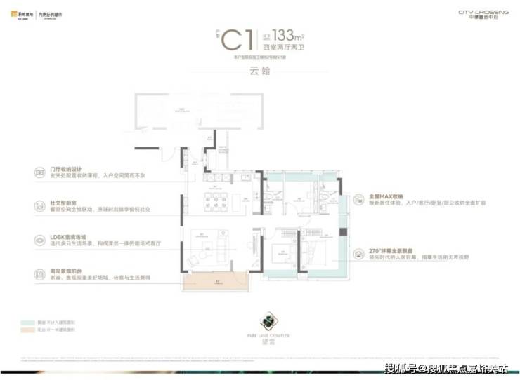 133㎡的四房产品是✅✅ 中環置地中心望云售楼处电话:400-9975-759✅✅ 项目的明星户型,板块内以及整个中环难得的改善型作品。