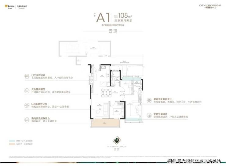 建面约108㎡的三房两厅两卫,总价约700万起,门槛友好,年轻家庭置业中环的不二选择。
