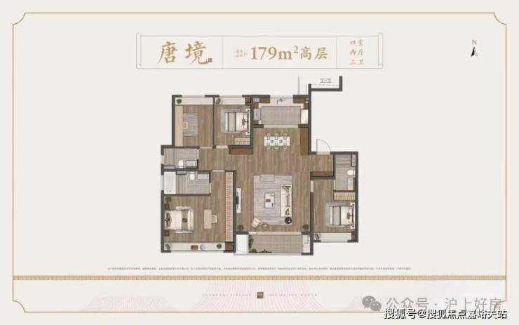下叠餐客厅连通,空间开阔。动静分离,主卧带小阳台,步入式☑️☑️建发观唐府售楼处电话:400 - 8377 - 020☑️☑️衣帽间。次卧私密性良好。3卫设计使用方便,且布局合理。
