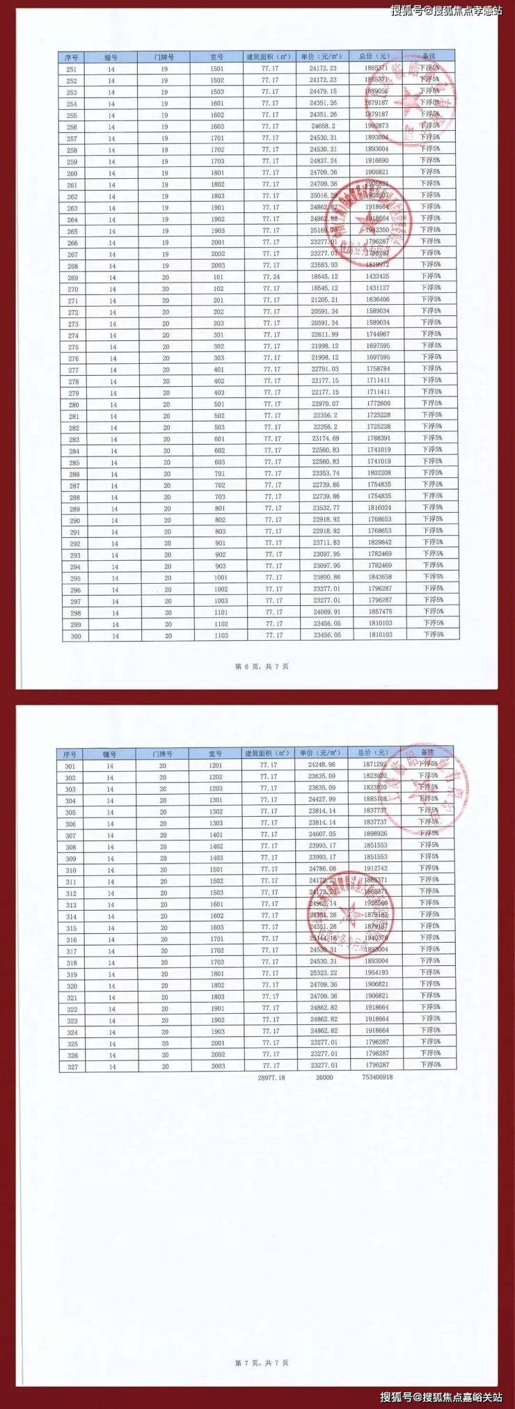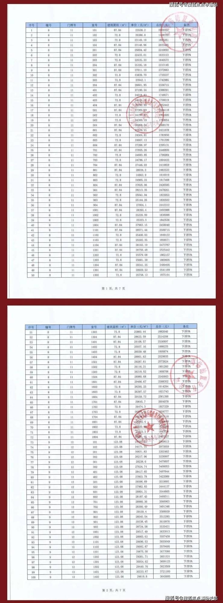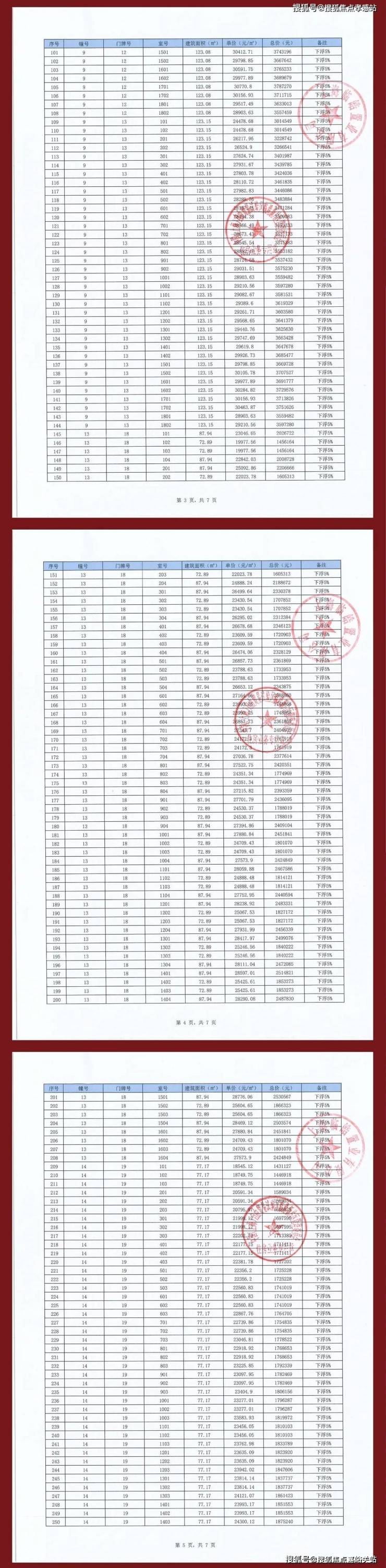 项目一房一价表
