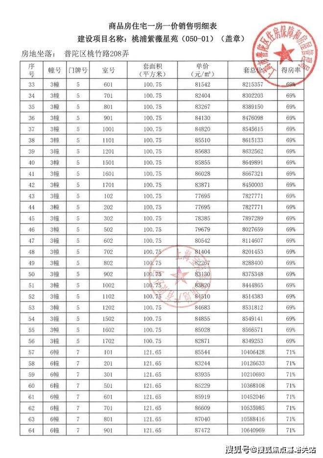 项目一房一价表