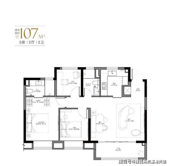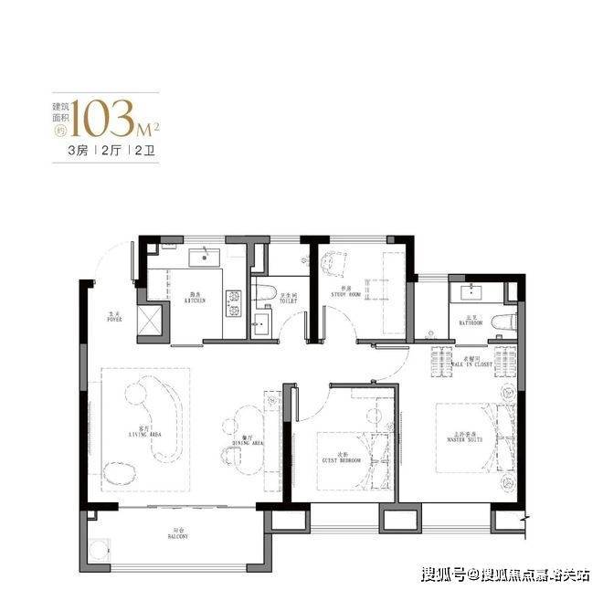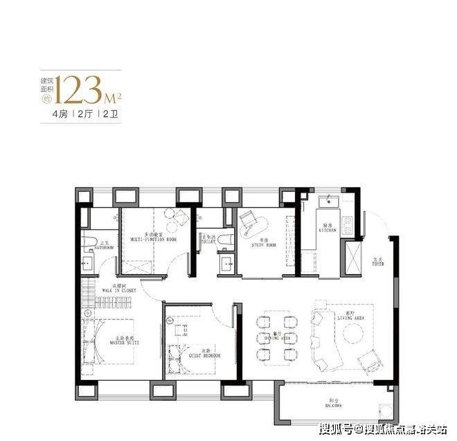 产品: 103㎡、107㎡的三房两厅两卫及123㎡、129㎡的四房两厅两卫