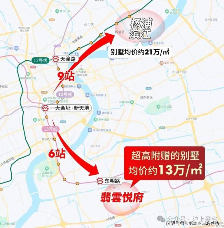 更别说浦西了,距离新天地9站的杨浦滨江别墅新房均价约21万/㎡。
