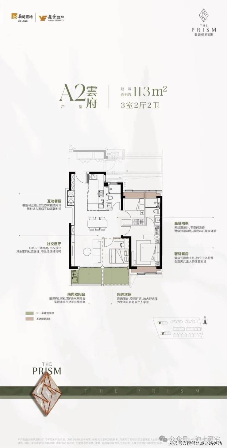 建面约113㎡3房均是南向双阳台的配置,加上三飘窗(边套户型有一个约270°超大转角飘窗)的设计,整个套内的实际使用空间比一般的120㎡户型可大多了。