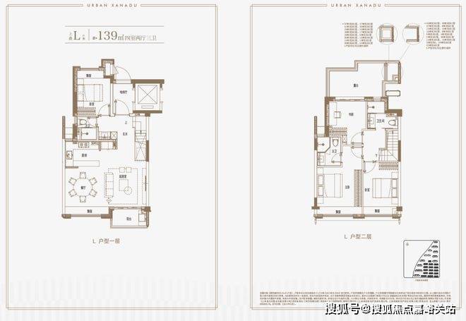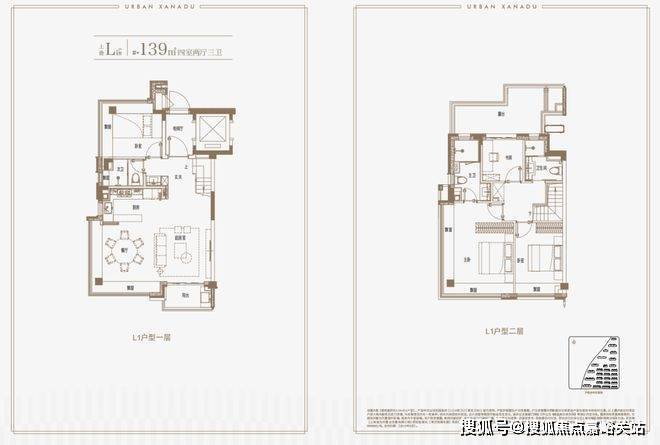 建面约139上叠户型,三层是会客区,四层是居住区,阳台+露台+多个飘窗设计,附加空间非常大,在别墅类产品中实属罕见!