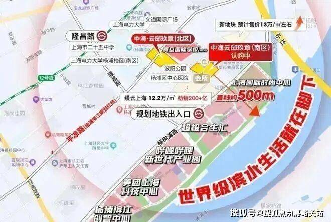 12号线隆昌路站:直线距离约500m,4站北外滩,7站陆家嘴,8站人广。