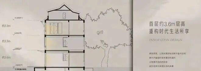 约3.6m首层层高,阔尺采光面。