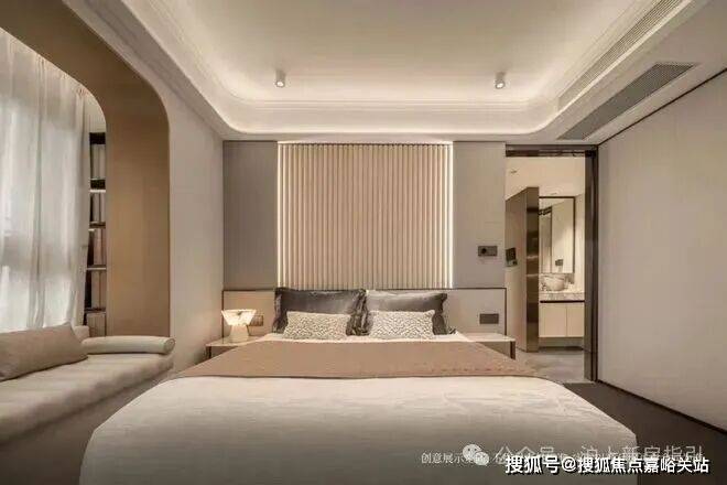 整个主卧尺度感是非常宽绰的,加上飘窗带来的视野延展以及收纳空间,居住舒适度拉满。