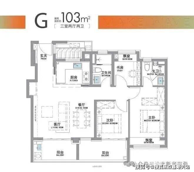“南向双阳台+南北双飘窗”,构筑真3房户型!